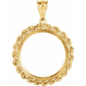 Cf38r / Coin Frame / Unset / 14K Yellow / 22 Mm / Tab Back / Polished / Rope Coin Frame Bezel Pendant