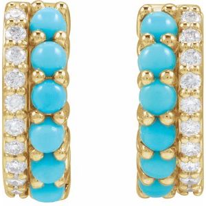 14K Yellow Natural Turquoise & 1/8 CTW Natural Diamond Huggie Hoop Earrings