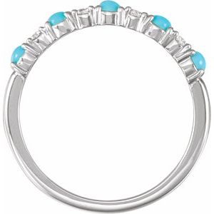 72346 / Ring / Set / 14K White / Natural Turquoise / Round / 2.5 Mm / Natural Diamond / Polished / Cabochon Natural Turquoise And 1/8 Ctw Natural Diamond Ring