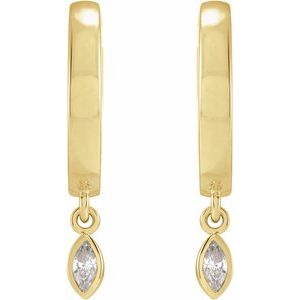 87495 / Earring / Set / Natural Diamond / Marquise / 4 X 2 Mm / 14K Yellow / Pair / Hinged / Polished / 1/8 Ctw Natural Diamond Bezel Dangle Hinged Hoop Earrings
