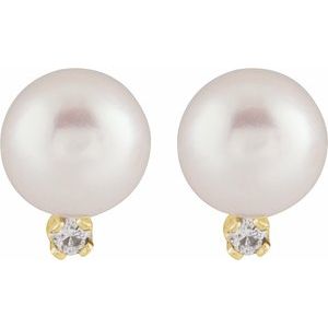 14K Yellow Cultured White Akoya Pearl & .02 CTW Natural Diamond Earrings