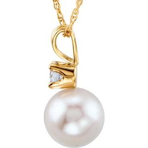 14K Yellow Cultured White Akoya Pearl & 1/10 CTW Natural Diamond 18″ Necklace