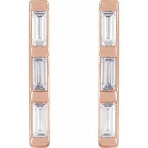 88142 / Set / 14K Rose / 3-Stone / Natural Diamond / 2.5 X 1Mm :: 1/8 Ctw / Si2-Si3, Ghi / Pair / Polished / 1/8 Ctw Natural Diamond Bar Earrings