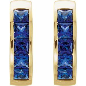 86563 / Earring / Set / Lab-Grown Blue Sapphire / Square / 2.5 X 2.5 Mm / 14K Yellow / Pair / Hinged / Polished / Lab-Grown Blue Sapphire Hoop Earrings