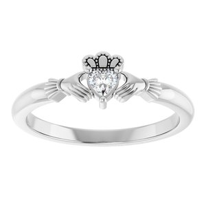 R50022 / Ring / Set / 14K White / Stuller Lab-Grown Moissanite / Heart / 3 X 3 Mm / Polished / Stuller Lab-Grown Moissanite Claddagh Ring