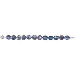 Sterling Silver Cultured Black Freshwater Pearl Coin 7 3/4″ Bracelet