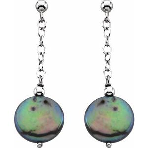 Sterling Silver Cultured Freshwater Black Coin Pearl Earrings