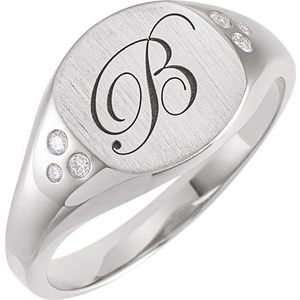 123030 / Ring / Set / 14K White / Natural Diamond / Round / Natural Diamond / Polished / .05 Ctw Natural Diamond Signet Ring