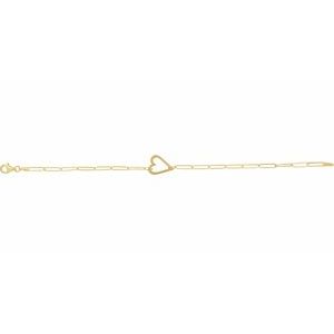 14K Yellow Heart & Paperclip-Style Chain 7″ Bracelet