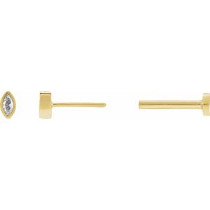 88234 / Earring / Set / Natural Diamond / Marquise / 2.5 X 1.25 Mm / 14K Yellow / Each / Tension Back Included / 6 Mm / Polished / .02 Ct Natural Diamond Bezel-Set Earring With Press Fit Back