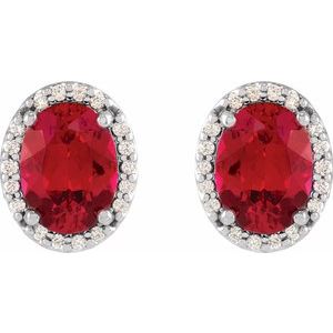 88134 / Earring / Set / Lab-Grown Ruby / Oval / 5 X 3 Mm / 14K White / Natural Diamond / Pair / Friction Backs Included / Polished / Lab-Grown Ruby And .04 Ctw Natural Diamond Halo-Style Basket Earrings