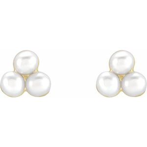 14K Yellow Cultured White Freshwater Pearl Cluster Earrings