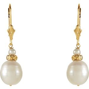 650906 / Earring / Set / Cultured White Freshwater Pearl / Pearl / 9.0-9.5 Mm / 14K Yellow / Cultured White Freshwater Pearl / Pair / Lever Backs / Polished / Cultured White Freshwater Pearl Earrings