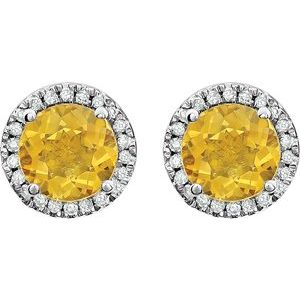 651302 / Earring / Set / Natural Citrine / Round / 6 Mm / 14K White / Natural Diamond / Pair / Friction Backs Included / Polished / Natural Citrine And 1/8 Ctw Natural Diamond Earrings