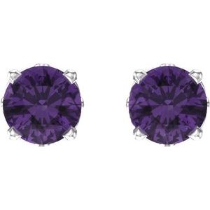 1924 / 14K White / Set / Round / Natural Amethyst / Pair / 4 Mm / Friction / Friction Backs Included / 4-Prong / Polished / Scroll Setting Stud Earrings