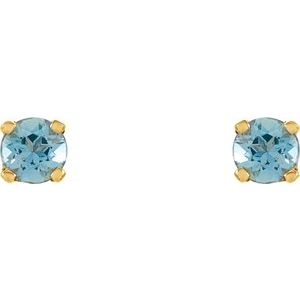 651643 / 14K Yellow / Set / Round / Natural Blue Zircon / Pair / 3 Mm / Threaded / Threaded Backs Included / 4-Prong / Polished / Youth Earrings With Backs