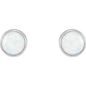 23482 / 14K White / Set / Round / Natural White Opal / Pair / 5 Mm / Friction / Friction Backs Included / Bezel / Polished / Natural Opal Earrings With Backs