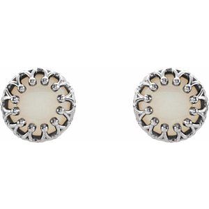 28503 / 14K White / Set / Round / Natural White Opal / Pair / 6 Mm / Friction / Friction Backs Included / Bezel / Polished / Natural White Opal Cabachon Earrings
