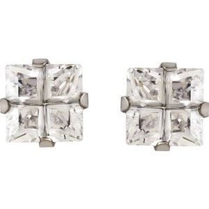 23615 / Stainless Steel / Set / Square / Imitation White Cubic Zirconia / Pair / 3.5 X 3.5 Mm / Piercing / Piercing Backs Included / 4-Prong / Polished / Inverness Square Cubic Zirconia Earrings