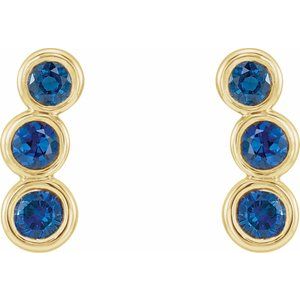 86701 / Earring / Set / Natural Blue Sapphire / Round / 3 Mm / 14K Yellow / Natural Blue Sapphire / Pair / Friction Backs Included / Polished / Natural Blue Sapphire Ear Climbers