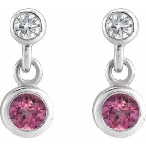 88441 / 14K White / Set / Round / Natural Pink Tourmaline / Pair / 3Mm :: 0.05 Ctw / I1, G-H / Friction / Friction Backs Included / Bezel / Polished / Natural Pink Tourmaline And .05 Ctw Natural Diamond Two-Stone Bezel Set Earrings