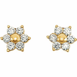 19253 / Earring / Set / Imitation White Cubic Zirconia / Round / 1.5 Mm / 14K Yellow / Pair / Friction Backs Included / Polished / Youth Cz Flower Earrings With Back