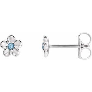 86737 / 14K Yellow / Set / Round / Imitation Aquamarine / Pair / 1.5 Mm / Friction / Friction Backs Included / 4-Prong / Polished / March Youth Imitation Birthstone Flower Earrings With Backs