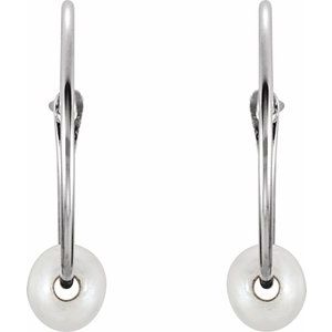 19108 / Earring / Set / Cultured White Freshwater Pearl / Pearl / 3 Mm / 14K White / Pair / Hinged / Polished / Cultured White Freshwater Pearl Youth Hoop Earrings