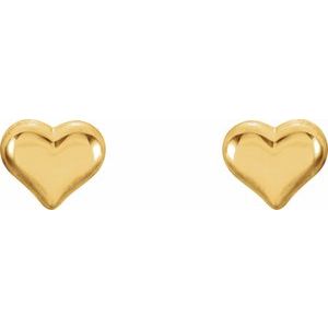 192027 / Earring / 14K Yellow / Pair / Threaded Backs Included / Polished / Puffed Heart Earrings